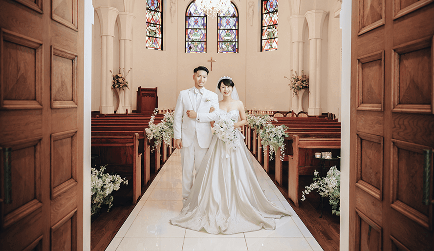 スタジオフォト・ロケーションフォトに加えて、同敷地内での本格大聖堂チャペルでの挙式がセットになったプラン。